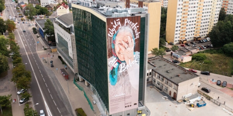 Mural przedstawia, zmarłą w kwietniu 2022 r., babcię dziennikarza radiowego Andrzeja Bajguza, który – jak twierdzi – tak właśnie ją zapamiętał.