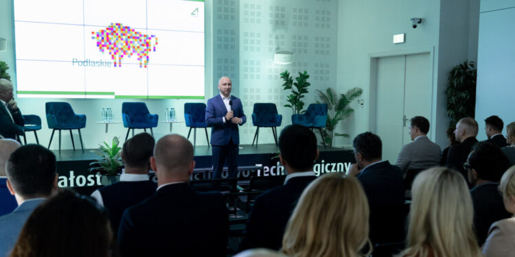 W Białostockim Parku Naukowo-Technologicznym, w poniedziałek, 6.10, odbyła się uroczysta inauguracja projektu „4Podlaskie – Na zdrowie!”, który ma szansę stać się motorem nowoczesnych zmian w regionie. W wydarzeniu uczestniczyli przedstawiciele nauki, biznesu oraz samorządu – w tym rektorzy podlaskich uczelni, przedsiębiorcy, posłowie i reprezentanci instytucji wspierających rozwój gospodarczy regionu. Samorząd województwa reprezentowali marszałek Łukasz Prokorym, przewodniczący sejmiku Cezary Cieślukowski i radny wojewódzki Stanisław Derehajło.