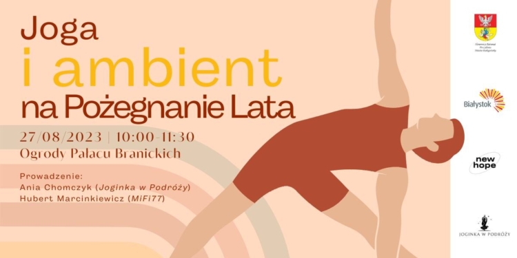 Udział w wydarzeniu „Joga i ambient na pożegnanie lata” jest bezpłatny, każdy zainteresowany będzie mógł w nim uczestniczyć. Sesja odbędzie się 27 sierpnia w godz. 10.00-11.30 w dolnym ogrodzie Pałacu Branickich przy fosie i będzie otwarta dla osób na każdym poziomie zaawansowania. Proces odprężenia pogłębi subtelna muzyka. Każdy uczestnik powinien przynieść matę do ćwiczeń, luźny strój sportowy i wodę.