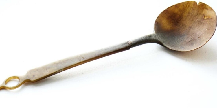 Według informacji umieszczonej w spisie muzealiów przekazanych Towarzystwu Przyjaciół Bielska Podlaskiego, łyżka wykonana z kości stanowiła własność zesłańca syberyjskiego z 1863 r. (wcześniej uczestnika Powstania Styczniowego). Wykonano ją prawdopodobnie z fragmentu kości bydlęcej. Czerpak połączono z rękojeścią za pomocą metalowego gwintu, umocowanego wewnątrz kości. W zakończeniu rękojeści wyżłobiono otwór służący do zawieszania łyżki.