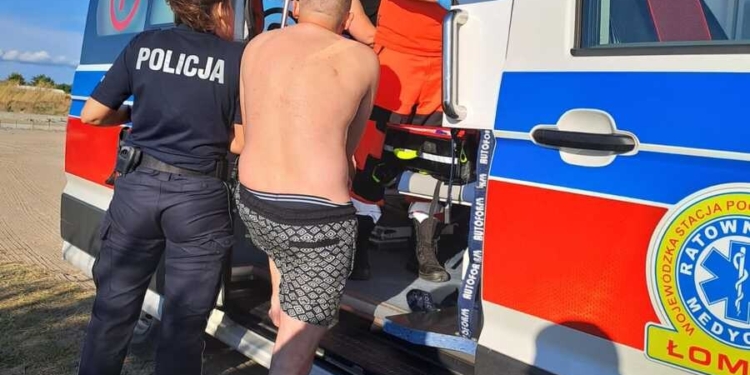 Policjant uratował tonącego mężczyznę. Do zdarzenia doszło wczoraj wieczorem na jeziorze Toczyłowo. Zaalarmowani o wywróconej na wodzie łodzi policjanci natychmiast ruszyli na ratunek. Gdy przyjechali na miejsce, to zobaczyli na brzegu wystraszonego nastolatka. Chłopiec powiedział, że pływał razem z wujkiem na łódce, która w pewnym momencie wywróciła się. On sam dopłynął do brzegu, ale jego wujek został w wodzie. Straszy posterunkowy Patryk Poźniak wyposażony w rzutkę i kamizelkę ratunkową wskoczył do wody i popłynął w kierunku mężczyzny na ratunek. Policjant po przepłynięciu około 150 metrów zauważył 48-latka, który resztkami sił próbował wydostać się na powierzchnię wody. Funkcjonariusz chwycił tonącego i ewakuował na brzeg. W tym samym czasie posterunkowy Klaudia Glińska wezwała na miejsce karetkę pogotowia i zaopiekowała się nastolatkiem. Policjant po dopłynięciu na brzeg rozpoczął resuscytację. Po chwil udało się przywrócić 48-latkowi funkcje życiowe. Chłopiec z wujkiem bezpiecznie trafili do szpitala.