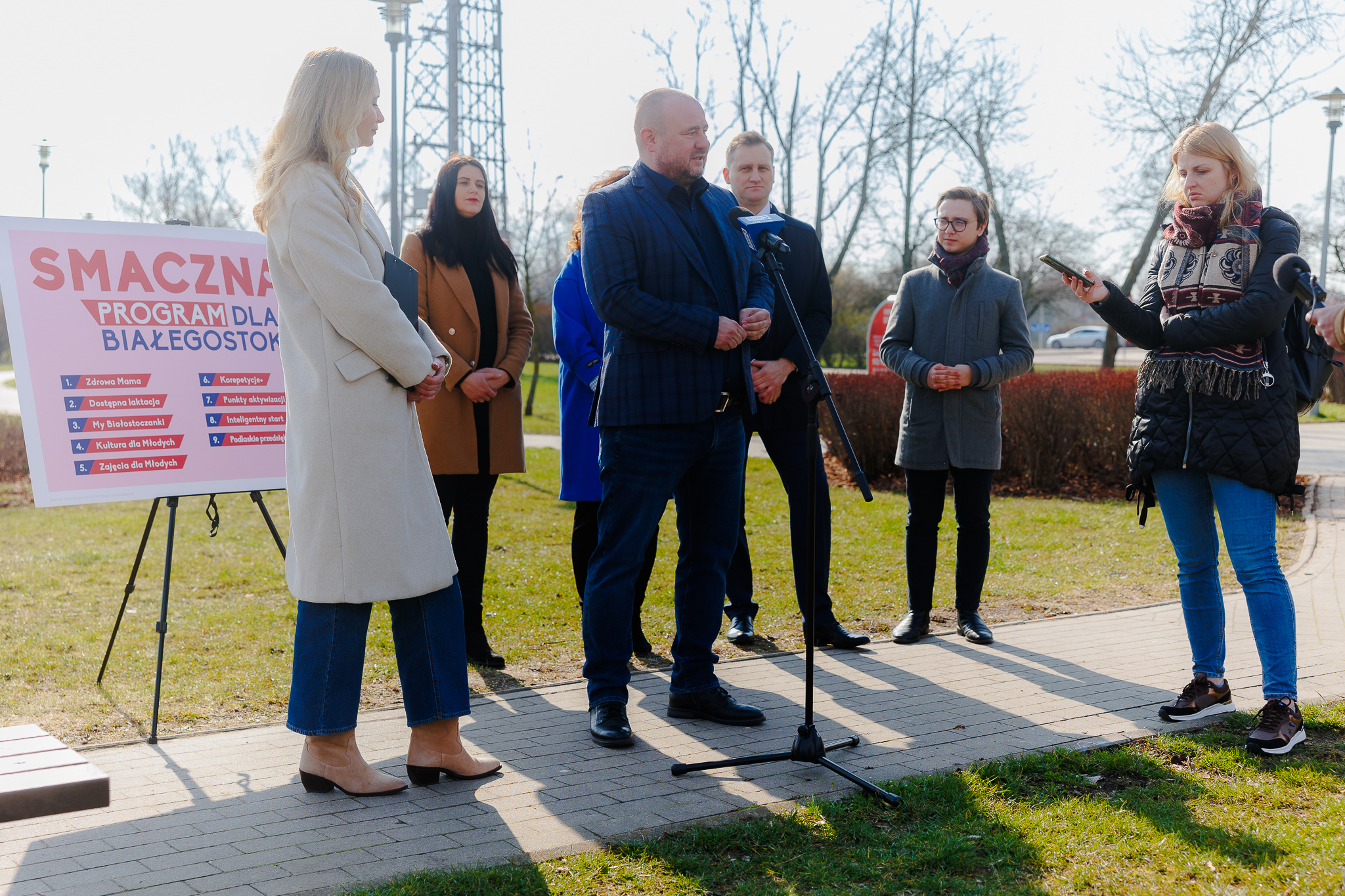 Podczas konferencji prasowej która odbyła się na Skwerze im. Janusza Smacznego, kandydatce towarzyszyli radny miejski Sebastian Putra, radna miejska Katarzyna Siemieniuk, były przewodniczący NZS Marcin Leoszko, Przewodniczący Młodzieżowego Sejmiku Województwa Podlaskiego Mateusz Feszler oraz Marta Kisielewicz, młoda białostoczanka i przyszła mama.