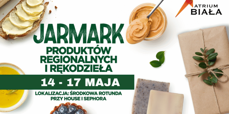 Jarmark Produktów Regionalnych i Rękodzieła odbędzie się w dniach 14-17 maja, w godz. 9.00-21.00; stoiska rozlokowane będą na środkowej rotundzie pomiędzy House i Sephora w CH Biała. Udział w wydarzeniu jest bezpłatny!