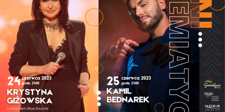 W weekend 24 i 25 czerwca całe Siemiatycze staną się areną wielkiego muzycznego święta za sprawą Dni Siemiatycz 2023! Już od godz. 16:00 na scenie amfiteatru nad zalewem przy ul. Grodzieńskiej występować będą grupy i zespoły z Siemiatycz, nie zabraknie także gwiazd polskiej muzyki. 24 czerwca zaprezentują się kapela podwórkowa „Caravana”, Klub Senior +, Uniwersytet Trzeciego Wieku, chór Wokaliza i zespół Omorfos. Sobotni wieczór to koncert damy polskiej muzyki – o godz. 21:00 wystąpi Krystyna Giżowska z zespołem Blue Sounds. Niedzielne wydarzenia, 25 czerwca, rozpocznie spektakl teatralny dla dzieci, następnie scenę przejmą grupy taneczne S.O.K., Zespół Pieśni i Tańca Małe Podlasie, Kurpie Zielone oraz bielskie Hoyraki. O godz. 21:00 publiczność w amfiteatrze rozgrzeje Kamil Bednarek.