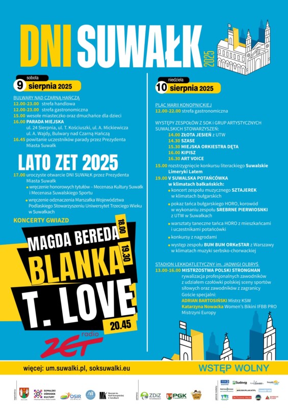 Serdecznie zapraszamy na DNI SUWAŁK 2025, które odbędą się w dniach 9 i 10 sierpnia!