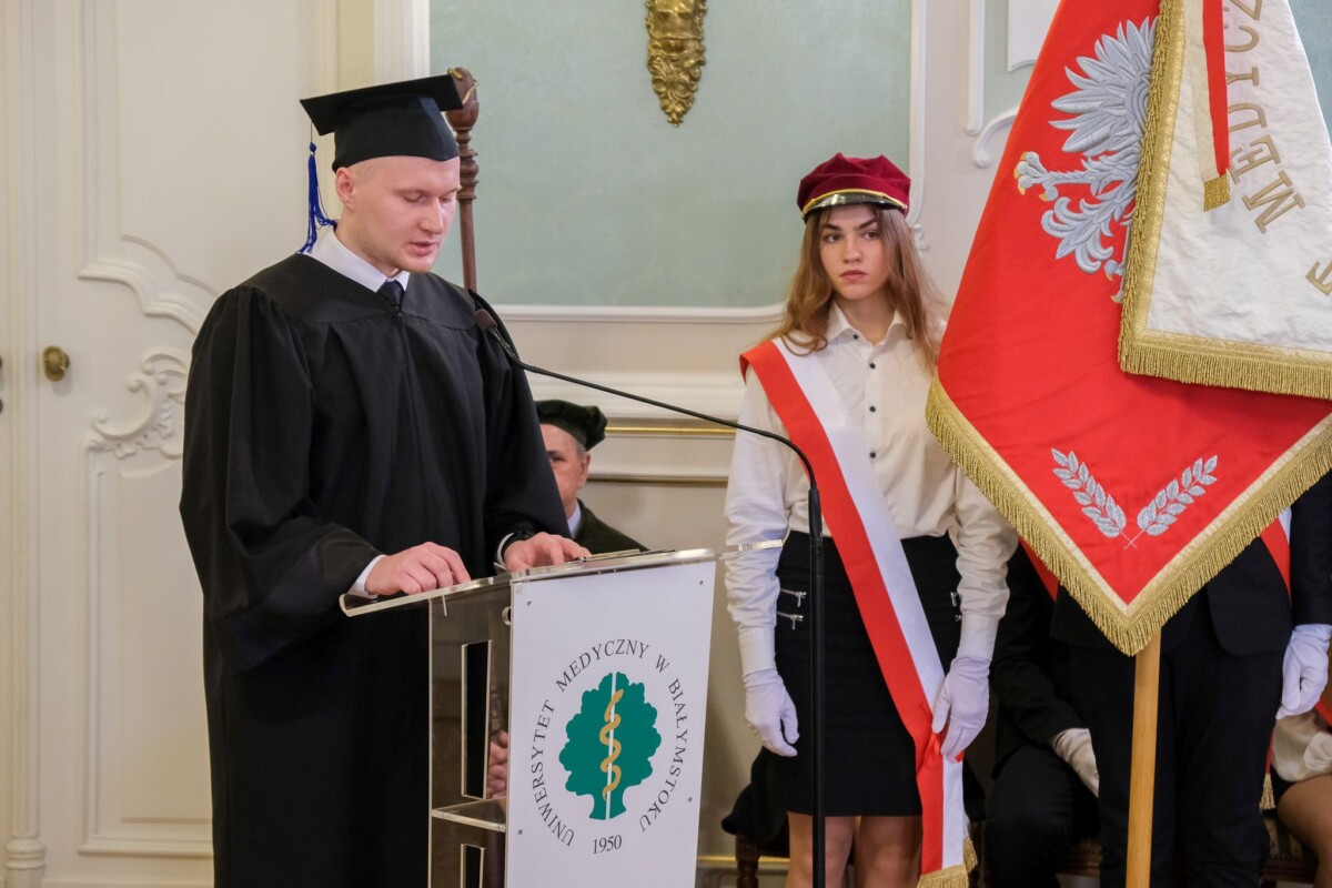 Uroczystość odbyła się we wtorek w Aula Magna Pałacu Branickich. Uczestniczyli w niej m.in. dr hab. Maciej Krawczyk – Konsultant Krajowy w dziedzinie fizjoterapii, Maciej Bogdan – Koordynator Wojewódzkiego Oddziału Terenowego Biura Krajowej Izby Fizjoterapeutów, a także władze UMB w osobach Rektora prof. Marcina Moniuszki i Prorektorów prof. Iriny Kowalskiej i prof. Janusza Dzięcioła.