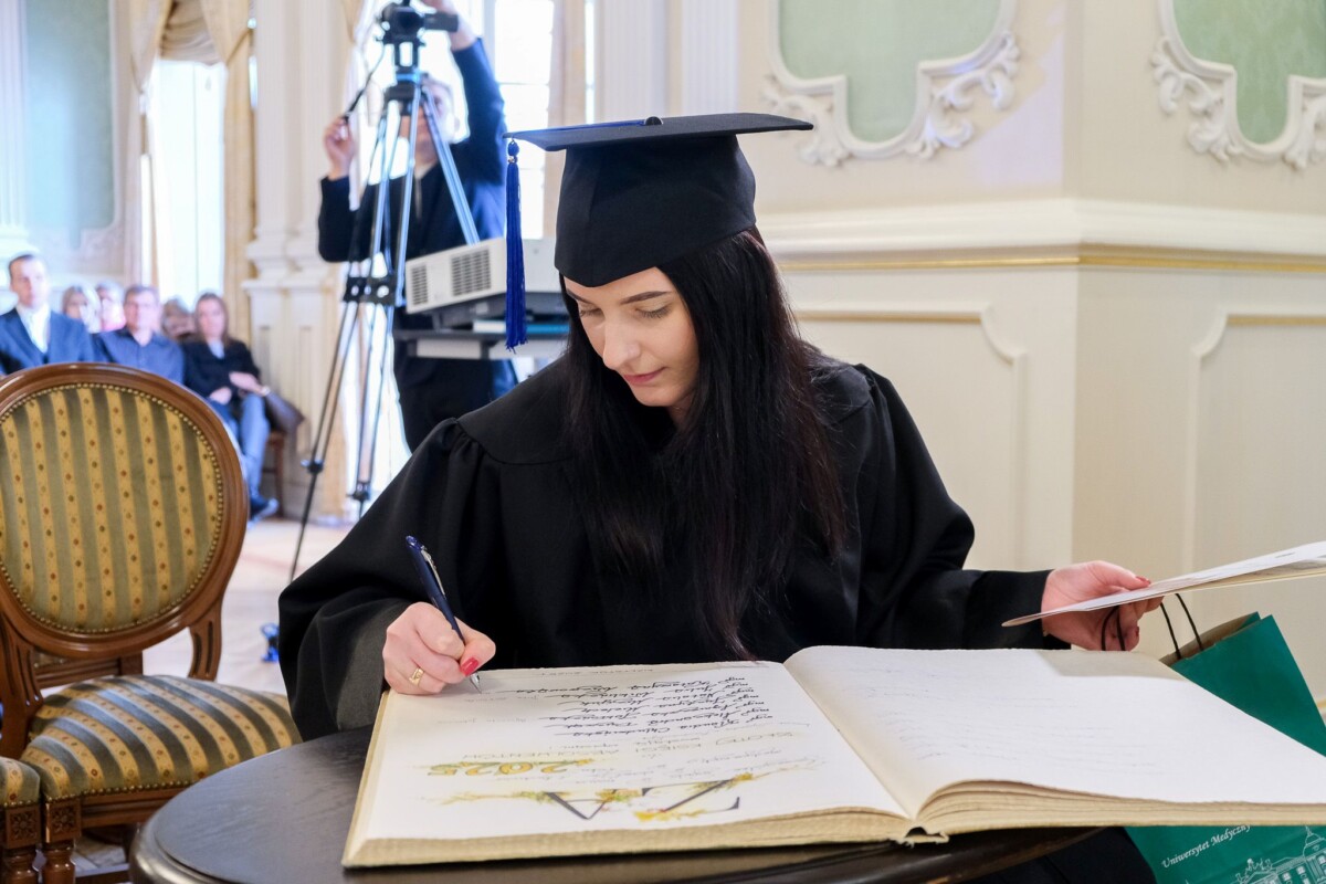 Nim rozdano dyplomy, specjalne wyróżnienia – Honorowy Dyplom Rektora UMB – odebrali absolwenci różnych kierunków z WNoZ, których średnia z całych studiów osiągnęła co najmniej 4,75. Jednocześnie ich nazwiska zostały wpisane do Złotej Księgi Absolwentów Wydziału Nauk o Zdrowiu.