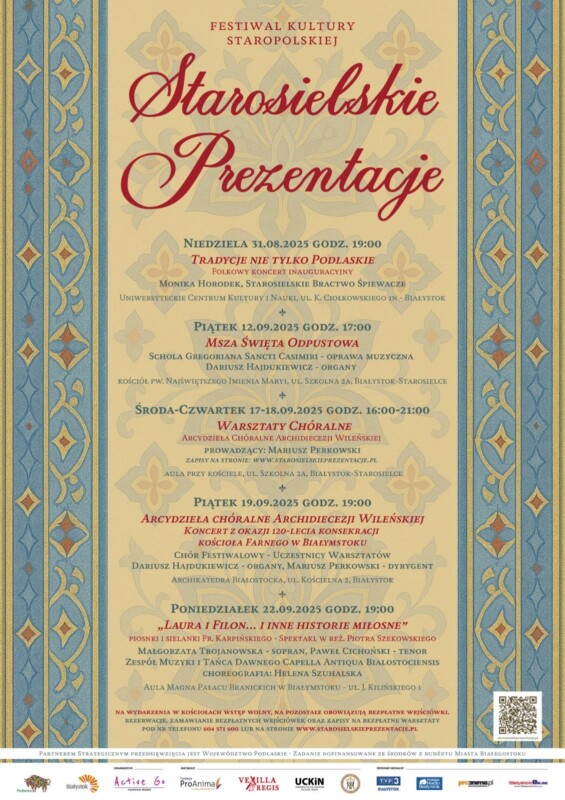 Od 31 sierpnia do 22 września 2025 r. Białystok rozbrzmi muzyką dawną, śpiewem tradycyjnym i literaturą Oświecenia. 7. edycja Festiwalu Kultury Staropolskiej „Starosielskie Prezentacje” zaprasza na koncerty, warsztaty chóralne oraz finałowy spektakl poświęcony twórczości Franciszka Karpińskiego.