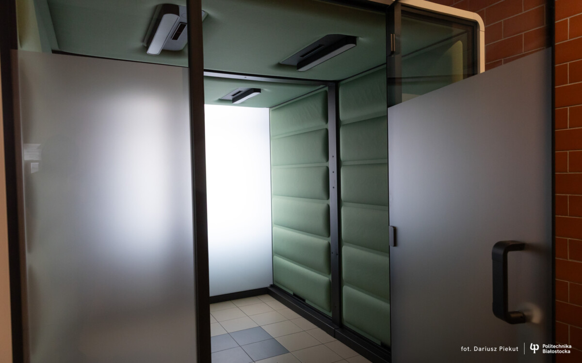 Politechnika Białostocka wprowadziła kolejne rozwiązanie poprawiające komfort studiowania i pracy. Na wszystkich wydziałach uczelni zainstalowano nowoczesne kabiny akustyczne. To specjalnie zaprojektowane, niewielkie i wyciszone pomieszczenia zapewniające komfortową przestrzeń do pracy, koncentracji lub regulacji bodźców.
