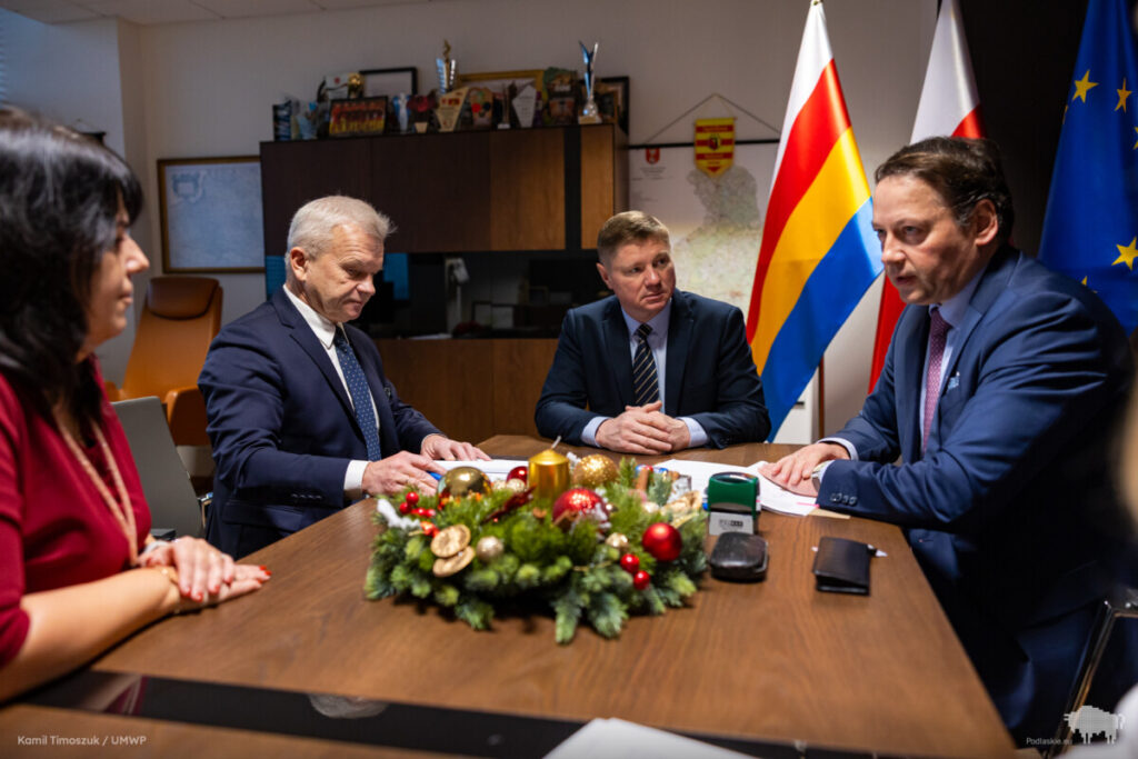 W spotkaniu uczestniczyły również: dyrektor Departamentu Innowacji i Przedsiębiorczości Emilia Malinowska oraz Anna Budzisz z referatu Rozliczeń Projektów UMWP.