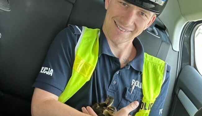 Policjanci z białostockiej drogówki kontrolujący prędkość na Alei Niepodległości zauważyli pojazdy, które zaczęły zatrzymywać się pod wiaduktem w obydwu kierunkach. Gdy mundurowi pojechali w miejsce, zauważyli chodzącą po jezdni kaczkę z pięcioma kaczątkami. W pewnym momencie kaczka odleciała, pozostawiając pisklęta same. Policjanci wspólnie z kierowcami zaczęli łapać kaczątka.