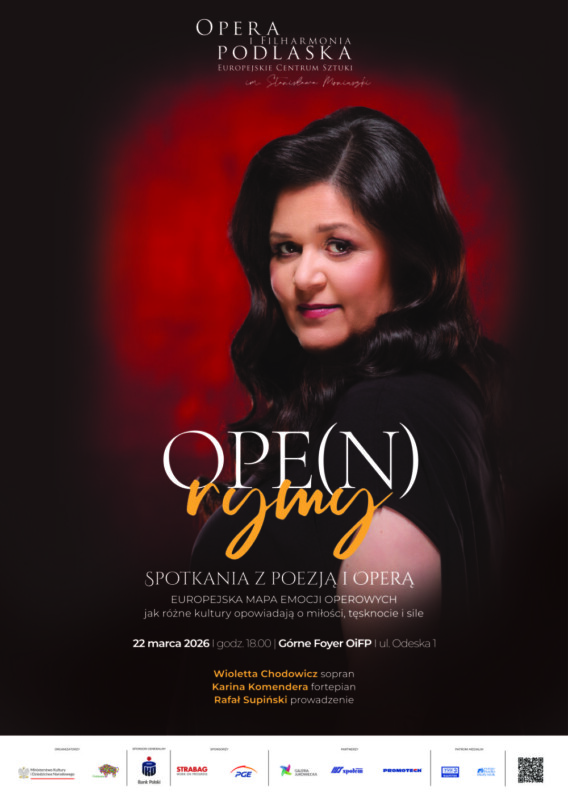 Opera to poezja, która żyje w dźwięku. Słowo i muzyka w operze tworzą nierozerwalną całość – dopiero razem dają emocję, która unosi się ponad tekstem i ponad melodią. OPE(N)RYMY to nowy, kameralny cykl edukacyjny Opery i Filharmonii Podlaskiej, w którym pokazujemy, jak słowo w arii staje się muzyką, a muzyka – opowieścią. To krótkie spotkanie z operą w lekkiej, przystępnej formie, prowadzone z humorem i pasją. W programie znajdą się arie wykonywane na żywo oraz krótkie anegdoty o tym, jak powstaje operowa emocja – od poetyckiego tekstu, przez frazę, aż po interpretację solisty.