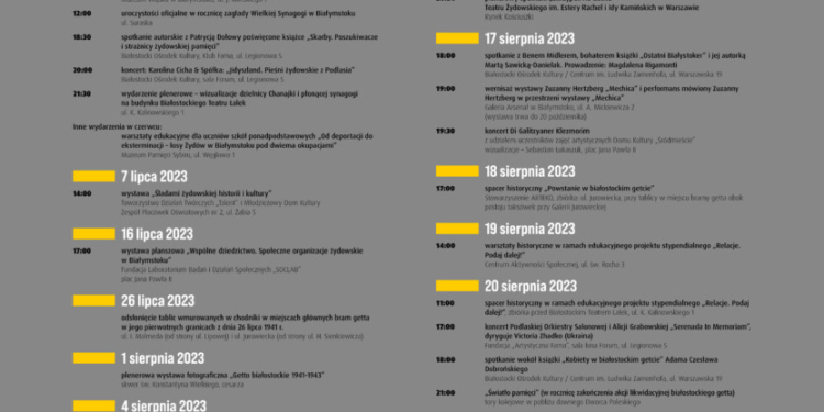 Kolejne wydarzenia czekają na białostoczan m.in. 18, 19, 20 i 27 sierpnia. Szczegółowy program obchodów 80. rocznicy powstania w getcie znajduje się w załączniku na dole strony.