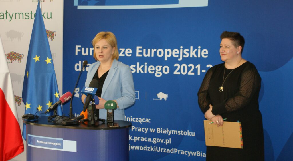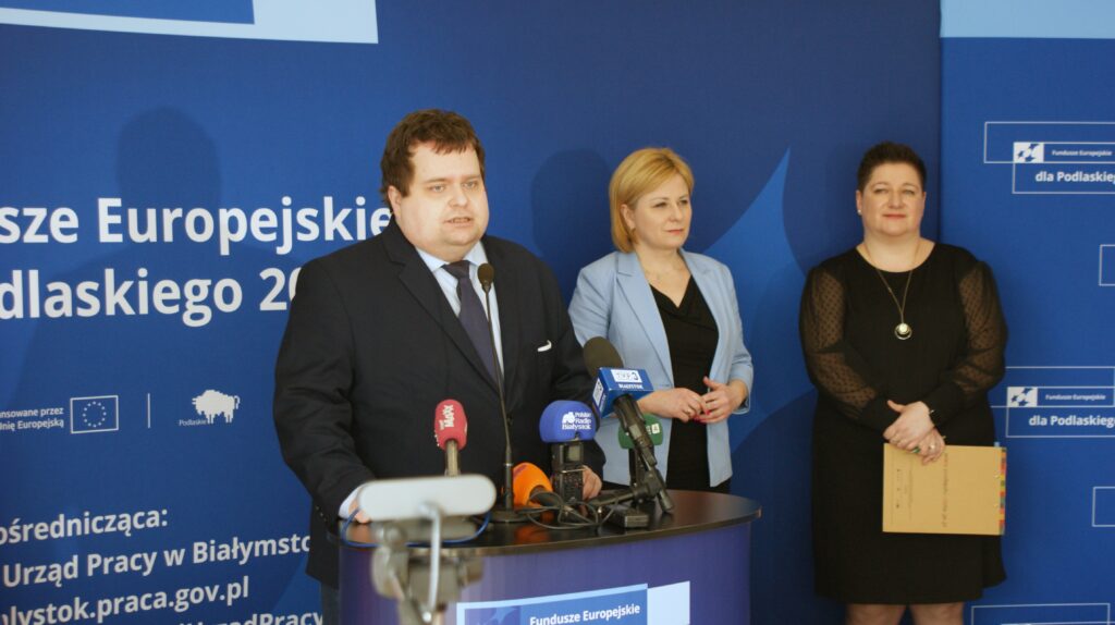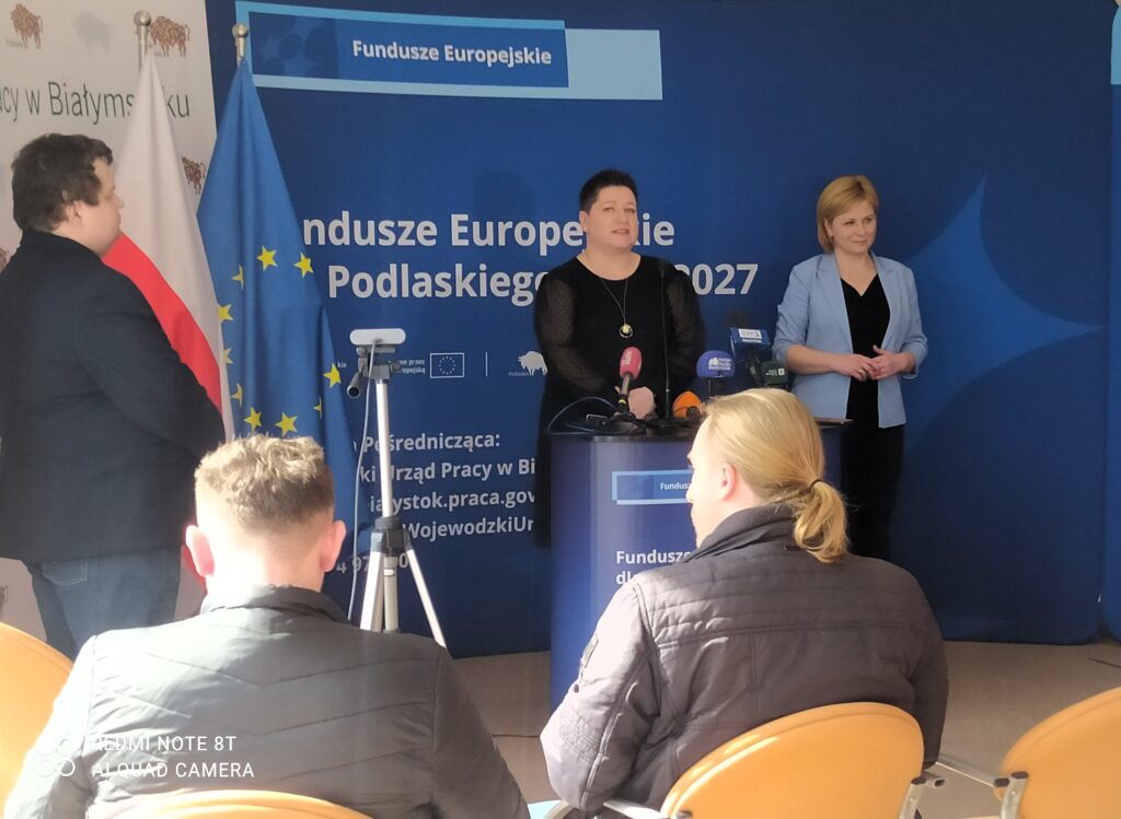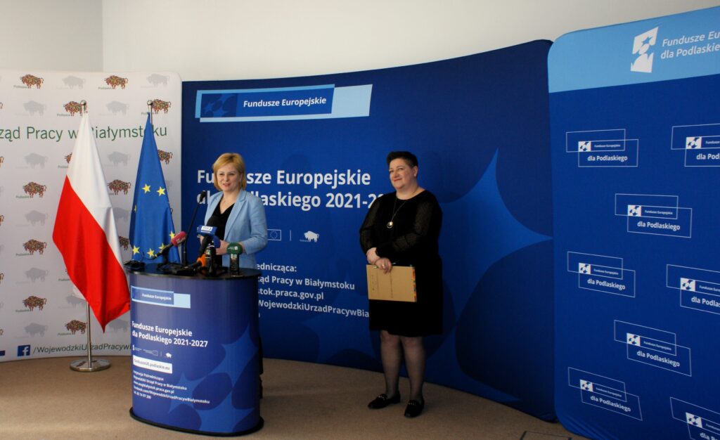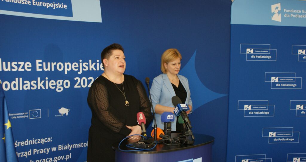 W Wojewódzkim Urzędzie Pracy w Białymstoku odbył się briefing prasowy poświęcony projektowi pn.: „Podmiotowy System Finansowania – realizacja usług rozwojowych w województwie podlaskim” w ramach Programu Fundusze Europejskie dla Podlaskiego 2021-2027. Joanna Sarosiek – dyrektor Departamentu Rozwoju Regionalnego Urzędu Marszałkowskiego Województwa Podlaskiego w Białymstoku zaznaczyła, że będzie on realizowany do końca grudnia 2029 r. Dofinansowanie ze środków unijnych (z Europejskiego Funduszu Społecznego Plus) wynosi prawie 55 mln złotych, czyli o przeszło 4 mln zł więcej niż przeznaczono na tego typu działanie w poprzedniej perspektywie. Wynika to z decyzji podjętej przez dr Artura Kosickiego – Marszałka Województwa Podlaskiego.