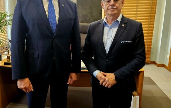 Prezydent Suwałk Czesław Renkiewicz spotkał się we wtorek (29 lipca) z odchodzącym ze stanowiska Konsulem Republiki Litewskiej w Sejnach. Genadijus Mackelis konsulem został w grudniu 2021 roku.