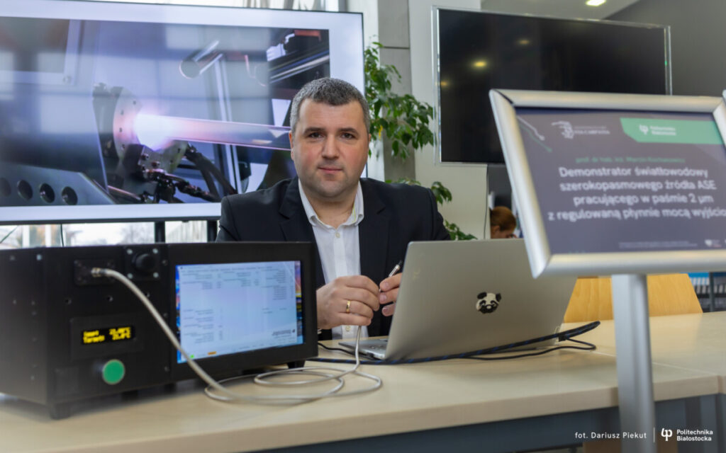 Politechnika Białostocka rozwija nowoczesną technologię światłowodową. Demonstrator szerokopasmowego źródła ASE w paśmie 2 μm może zrewolucjonizować obrazowanie medyczne, pomiary optyczne i detekcję gazów. Opracowaniem urządzenia kierował prof. Marcin Kochanowicz.