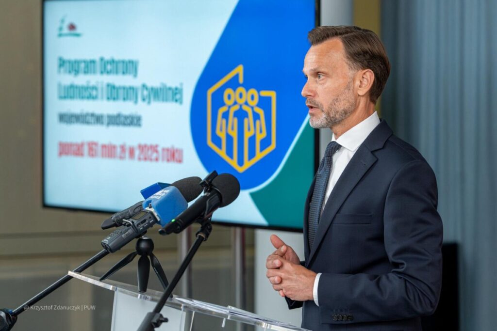 Wojewoda podkreślał, że przeznaczone na województwo podlaskie środki na 2025 rok pomogą rozpocząć przygotowania do inwestycji, które będą kontynuowane w kolejnych latach (np. dokumentację poprzedzającą budowę schronów).