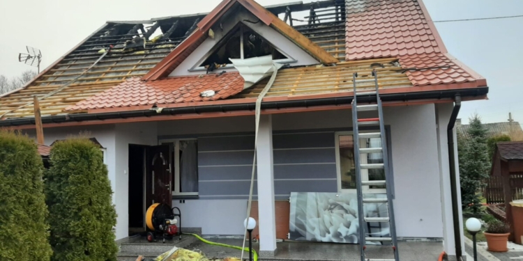 W chwili przybycia pierwszych jednostek ochrony przeciwpożarowej na miejsce zdarzenia zastano rozwinięty pożar dachu oraz poddasza jednorodzinnego budynku drewnianego krytego blachą. Płomienie były widoczne na całej powierzchni dachu. Na miejscu obecni byli właściciele budynku, którzy opuścili go przed przybyciem pierwszych zastępów. Nie zgłaszali oni żadnych dolegliwości mogących powstać w wyniku pożaru. Przybyłe na miejsce zdarzenia Pogotowie Energetyczne potwierdziło odcięcie budynku od sieci. Działania zastępów polegały na podaniu dwóch prądów wody w natarciu na dach budynku. Wraz z dojazdem kolejnych sił i środków podano kolejne dwa prądy wody w natarciu na dach budynku oraz w obronie budynku gospodarczego, połączonego z budynkiem mieszkalnym. W kulminacyjnym momencie podawano pięć prądów gaśniczych. Zaopatrzenie wodne realizowane było przy wykorzystaniu hydrantu nadziemnego zlokalizowanego w miejscowości Ruda Rzeczka. Po lokalizacji pożaru, przy pomocy podręcznego sprzętu burzącego, drabin przystawnych oraz pilarek do drewna przystąpiono do rozbiórki elementów objętych pożarem, z jednoczesnym dogaszaniem ukrytych zarzewi ognia. W końcowej fazie działań cały budynek przewietrzono przy wykorzystaniu wentylatora oraz sprawdzono przy użyciu urządzeń pomiarowych. Na miejscu zdarzenia współpracowano również z Policją.