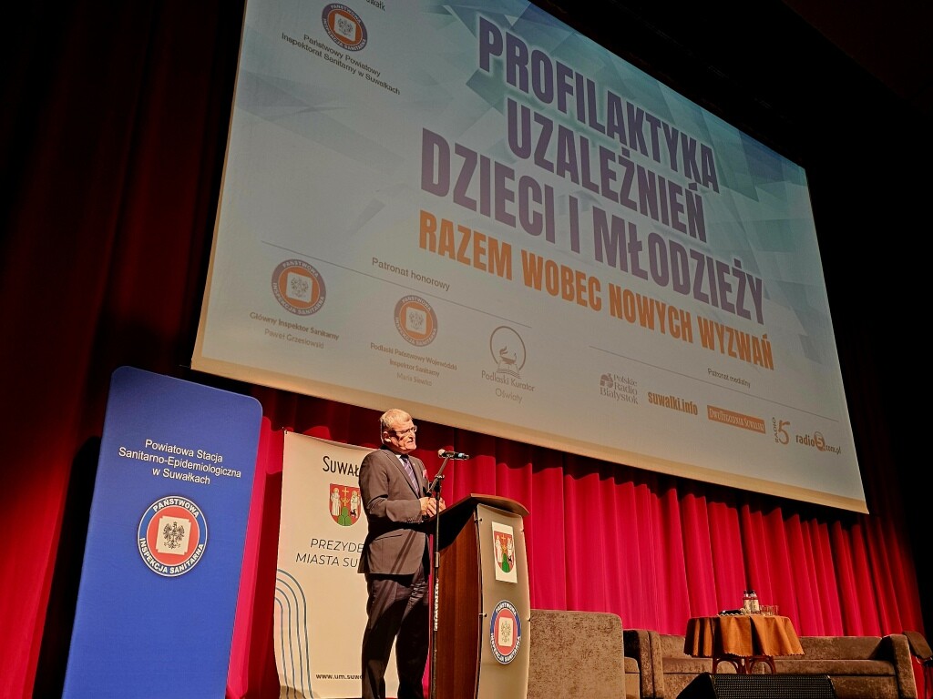 We Wtorek (28 października) w Suwalskim Ośrodku Kultury, w sali im. Andrzeja Wajdy, odbyła się konferencja pt. „Profilaktyka uzależnień dzieci i młodzieży – razem wobec nowych wyzwań”. Wydarzenie zostało zorganizowane przez Prezydenta Miasta Suwałk oraz Państwowego Powiatowego Inspektora Sanitarnego w Suwałkach.