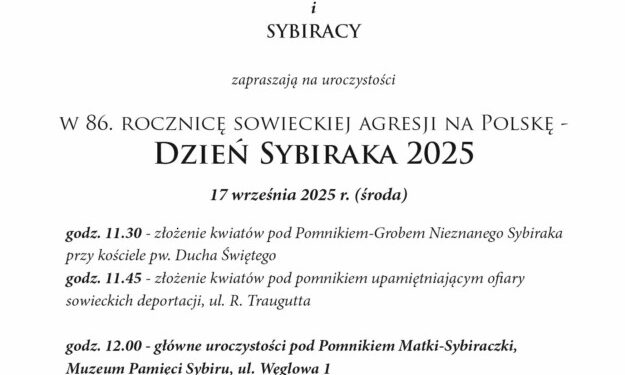 17 września przypada 86. rocznica agresji Związku Sowieckiego na Polskę. Białystok uczci tę rocznicę w szczególnym miejscu, pod pomnikiem upamiętniającym Bohaterskie Matki Sybiraczki na terenie Muzeum Pamięci Sybiru. Sejm RP w 2013 r. ustanowił 17 września Dniem Sybiraka. Prezydent Białegostoku zaprasza mieszkańców na tę uroczystość.
