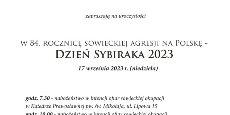 Białystok upamiętni 84. rocznicę sowieckiego ataku na Polskę oraz uczci Dzień Sybiraka. Główne uroczystości odbędą się 17 września o godz. 12.00 przy Muzeum Pamięci Sybiru. Do udziału w zaplanowanych wydarzeniach zapraszają prezydent Tadeusz Truskolaski i Sybiracy.