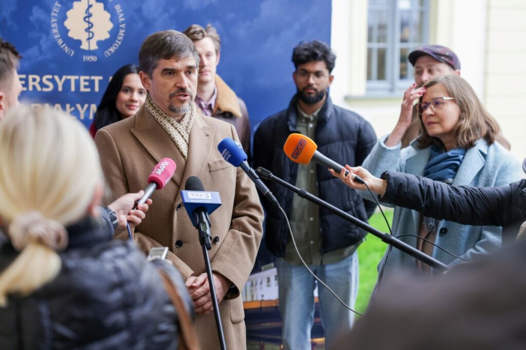 Jesienny Białystok w deszczu – mimo niesprzyjającej aury organizatorzy i partnerzy II Spaceru dla Zdrowia spotkali się dziś z przedstawicielami mediów przed Pałacem Branickich, aby zaprosić na wydarzenie, które odbywać się będzie pod hasłem: „Nie ma złej pogody na Spacer dla Zdrowia”. A spacerować będziemy w deszczu lub słońcu (niezależnie od pogody) już w niedzielę, 26 października 2025r.. Spotykamy się o godz. 10:00 na dziedzińcu przed Pałacem Branickich.
