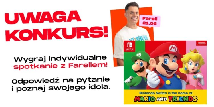 Prawdziwe emocje wzbudzą turnieje rozgrywane w Mario Kart 8 Deluxe i Mario Strikers. Na zwycięzców czekają atrakcyjne nagrody – karty prezentowe o wartości 1000, 600 i 300 zł! Zwieńczeniem wydarzenia będzie wizyta specjalnego gościa – Farell, popularny gamer i youtuber, pojawi się w centrum handlowym 21 czerwca w godzinach 13:00-16:00. To doskonała okazja, by zrobić sobie wspólne zdjęcie, zamienić kilka słów i zainspirować się jego pasją do świata gier.