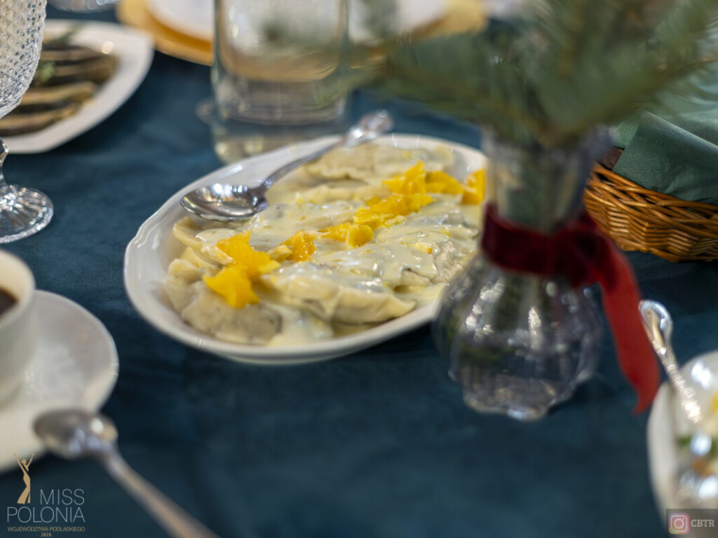 Dwór Dobarz już od progu zachwycił gości niezwykłym, świątecznym klimatem. Blask świateł, starannie przygotowane dekoracje i ciepło wnętrz stworzyły atmosferę bliskości i radości. Na stołach zagościły tradycyjne potrawy wigilijne, przygotowane z lokalnych składników, a całość dopełniły wyborne, świąteczne desery.