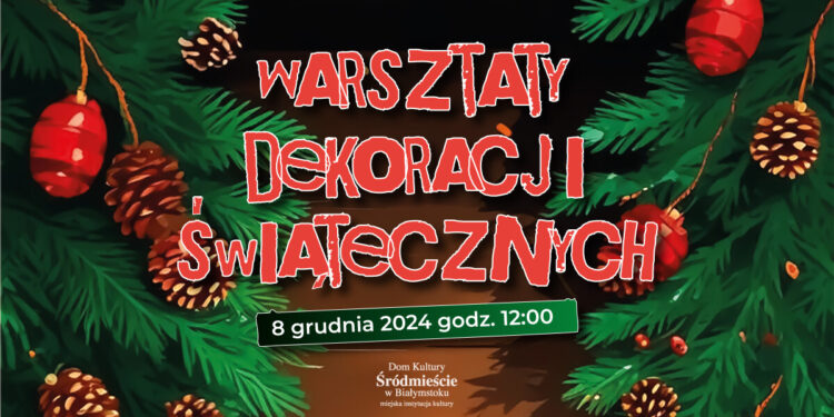 8 grudnia (niedziela) o godz. 12:00 w Pracowni Plastycznej DKŚ (ul. Icchoka Malmeda 17) odbędą się Warsztaty Dekoracji Świątecznych!
