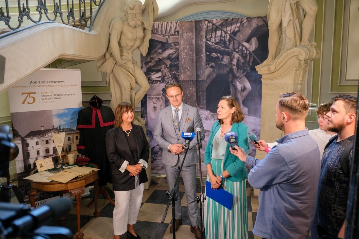 3 października inauguracja nowego roku akademickiego, a potem jubileuszowy Zjazd Absolwentów (3-4 października 2025 r.) Zjazd Absolwentów Uniwersytetu Medycznego w Białymstoku będzie ukoronowaniem obchodów 75-lecia Uczelni. Do tej pory organizowane były spotkania konkretnych roczników – i to z inicjatywy samych Absolwentów. Teraz Uczelnia chce zaprosić wszystkich, którzy ukończyli Akademię Medyczną w Białymstoku i Uniwersytet Medyczny w Białymstoku (tak zmieniała się nazwa) do wspólnego świętowania jubileuszu. Będzie to doskonała okazja do wspomnień, rozmów, powrotu do sentymentalnych wydarzeń i miejsc. Dzisiaj (4 września 2025 r.) w westybulu Pałacu Branickich odbyła się specjalna konferencja prasowa, podczas której Rektor prof. Marcin Moniuszko zaprosił na oba wydarzenia: inaugurację i Zjazd Absolwentów UMB. A Dyrektorka Muzeum UMB i Pałacu Branickich dr Magdalena Muskała opowiedziała o specjalnych Spacerach Śladami Pierwszych Studentów UMB (13 i 20 września 2025 r.)