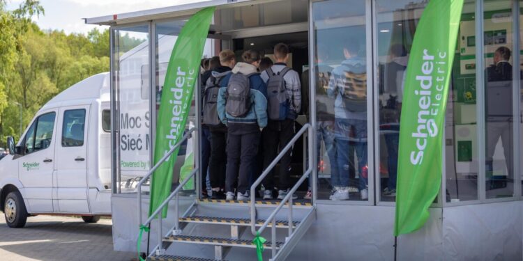 Firma Schneider Electric w Politechnice Białostockiej przedstawiła studentom i absolwentom innowacyjne rozwiązania z zakresu technologii energetycznych. Zielona Cyfrowa Ciężarówka zaparkowana przy Wydziale Elektrycznym posłużyła jako mobilne laboratorium do prezentacji omawianych systemów.